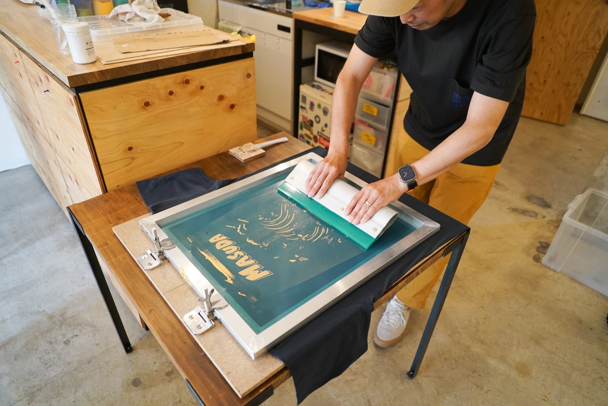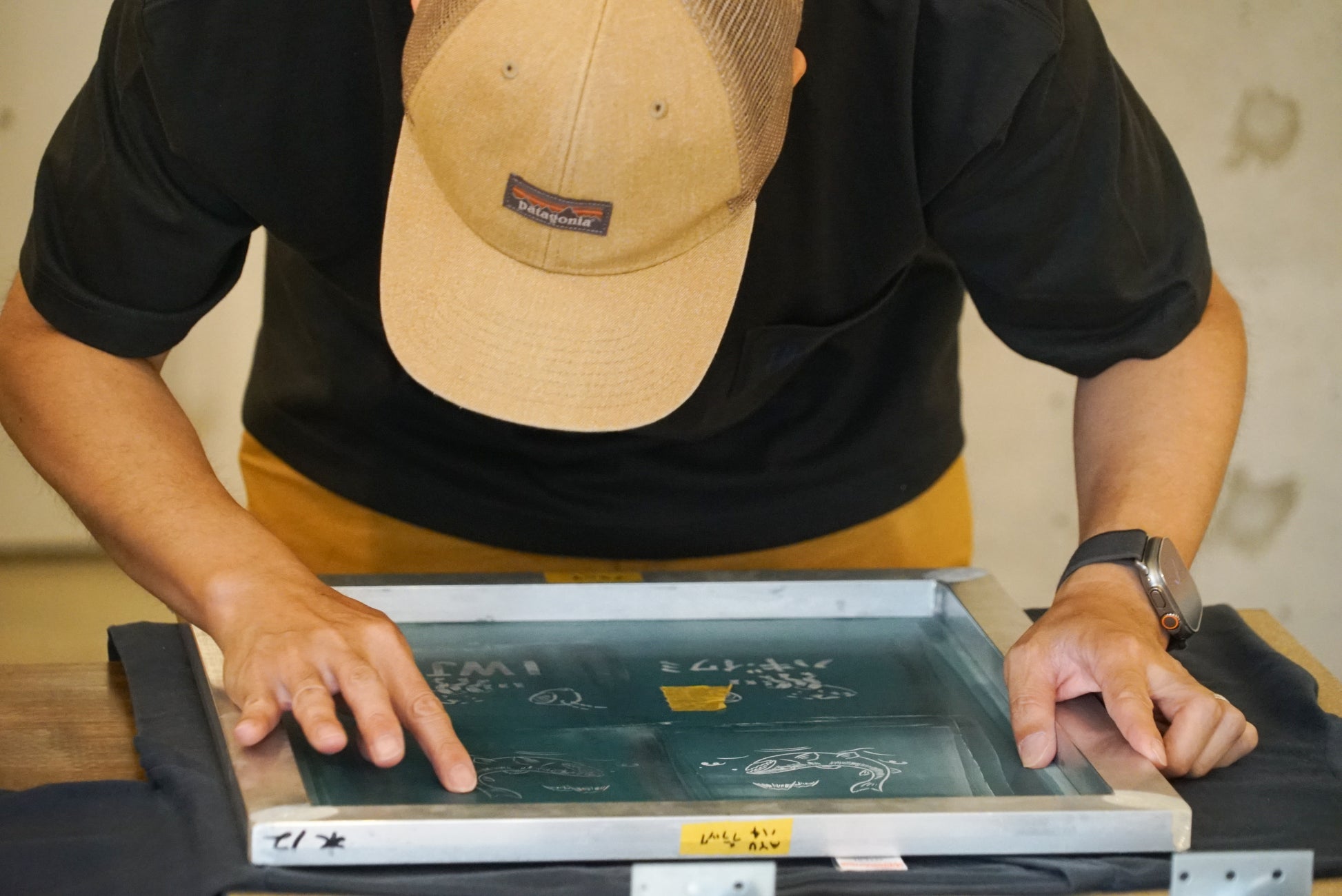 ※シルクスクリーンプリント2色手刷り特有のインクの刷りムラや版ズレがある場合があります。アジとしてお楽しみいただければと思います。